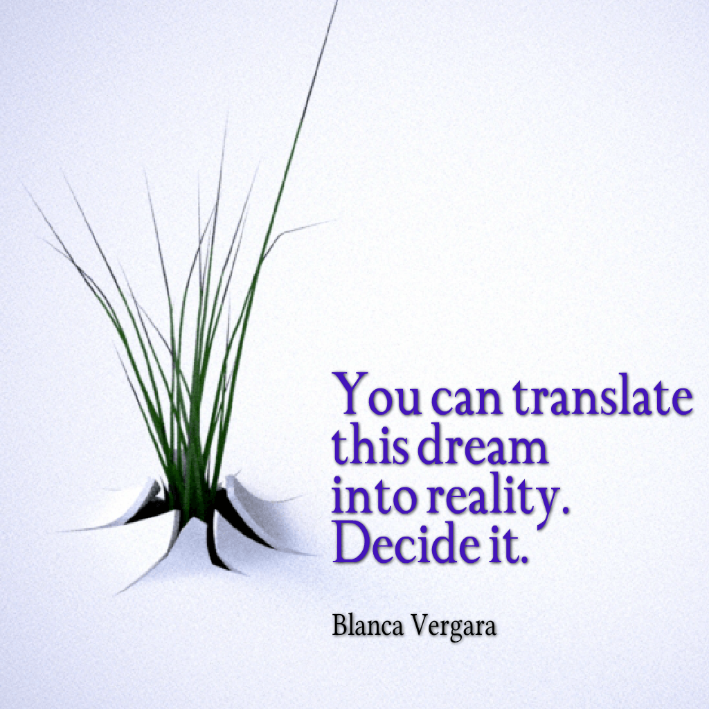 This is the word that gets in between our dreams and the rational reasons why we don’t have our dreams. You see sentences like, “I would love to be a multimillionaire, but I’m a woman”, “I would to be a business owner, but I’m too young”, “I would love to have a wonderful husband, fall in love, but I’m too old”. Just fill in the blank; your desire, beauty and the reason why you don’t have it. Yes, you of course can tell me that your reason is valid, you are old – some people tell me that they are old at 35, when my mother at 88 keeps going partying. Some things are true like you are a woman, like you are a man, like you are from fill in the blank, country X because I know that these videos are seen all over the world. These things that are true aren’t really boulders that are stopping you from becoming who we really want to be. Because you see, that desire that you have, that dream that you have, you have it because it is yours. You are dreaming it, the dream is yours. You can translate this dream into reality if you decide to live it. This brings to memory the beautiful saying of Sai Baba, “Life is lost in dreaming and dreaming is lost in becoming. Yes Blanca, but how can I lose my life for my dream? Have to pay the bills, I have to.